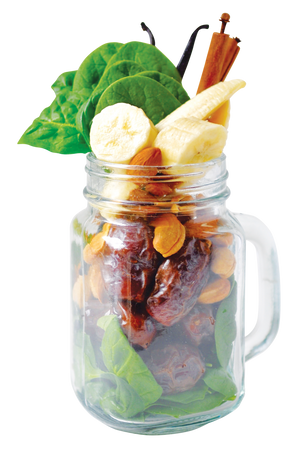 Ingredients: Bananas, Homemade Cashew Milk (Water, Cashews, Organic Vanilla Extract), Spinach, Almonds, Dates, Organic Ginger, Organic Cinnamon, Nutmeg, Cloves, Himalayan Salt.