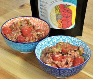 Un bol d'avoine énergisant, avec une compote de baies pures et des amandes réchauffées. Notre avoine biologique riche en fibres fournit des protéines et de l'énergie et vous aide à vous sentir rassasié plus longtemps. Les fraises riches en antioxydants sont sûrement l'une des délicieuses façons d'ajouter des vitamines, des minéraux et des fibres à votre journée ; ils aideront à réduire la tension artérielle, à soulager l'inflammation et à promouvoir la santé des os et du système immunitaire. Et avec le pouvoir antioxydant supplémentaire des amandes riches en protéines nutritives, vous pouvez aider à réduire le cholestérol, à réduire la faim et à stimuler votre métabolisme ; tout est là pour vous dans un petit bol pratique. Tout cela, avec des éclats de cacao riches en magnésium pour juste un soupçon de bonté chocolatée, le tout prêt pour vous en quelques minutes ! Sucrez au goût avec votre édulcorant préféré ou une alternative au sucre naturel, et le tour est joué. Ou ajoutez vos garnitures et "extras" préférés pour un bol parfait et personnalisé.