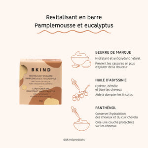 Formulé à base de beurre de mangue, d'huile d'Abyssinie et de Panthénol, il apporte hydratation, légèreté, protection et brillance aux cheveux et laisse derrière lui un doux parfum de pamplemousse et d'eucalyptus.