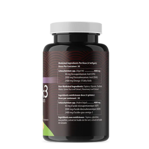 Ingredients: Algal oil, Tapioca, Glycerin, Purified Water, Green Tea Extract, Rosemary Leaf Extract