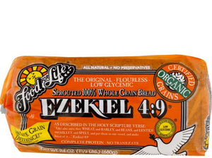 Ezekiel 4:9® Bread, made from freshly sprouted organically grown grains, is naturally flavorful and bursting with nutrients. Rich in protein, vitamins, minerals and natural fibre with no added fat. Try it served warm to release its exceptionally rich nutty flavour.