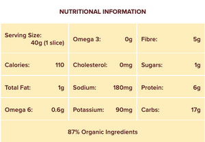 Organic sprouted whole wheat, raisin nectar (raisins, water), vital wheat gluten, organic sesame seeds, organic sunflower seeds, cultured wheat flour (wheat flour, bacterial culture), yeast, water, sea salt.