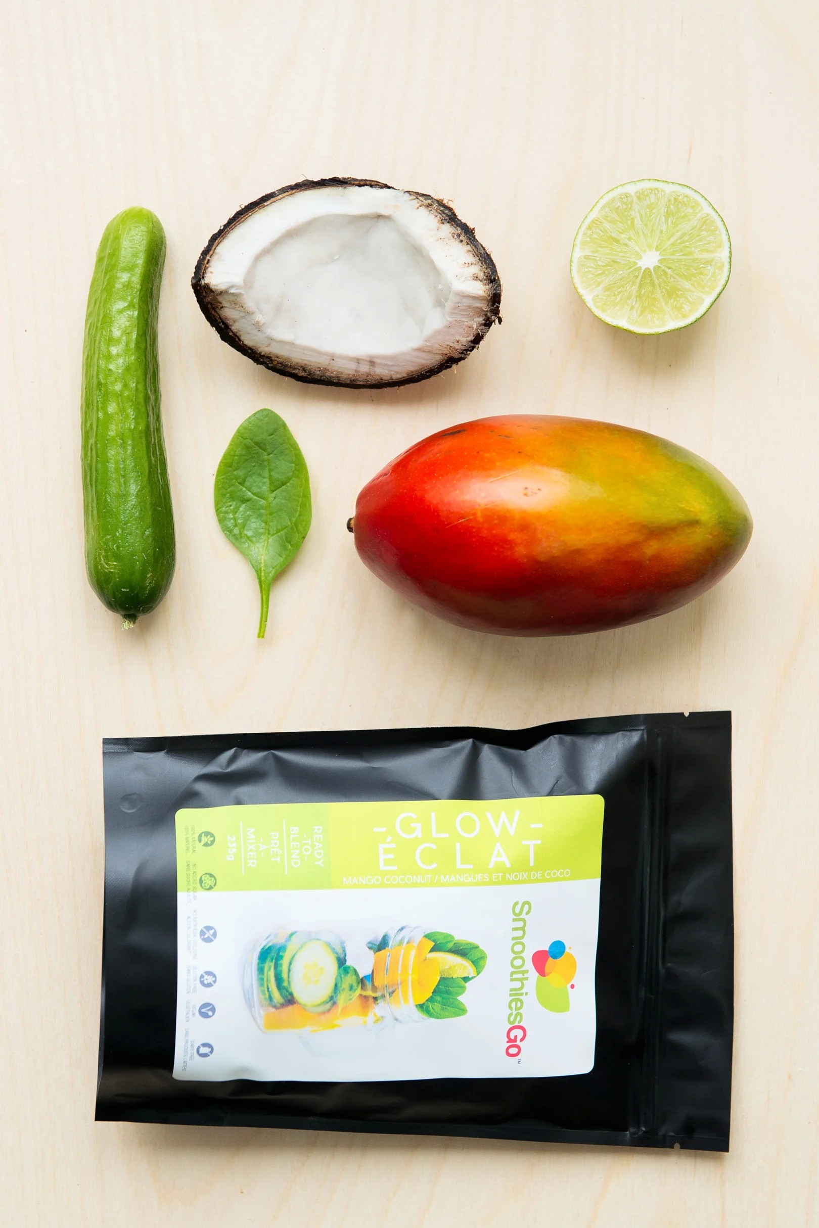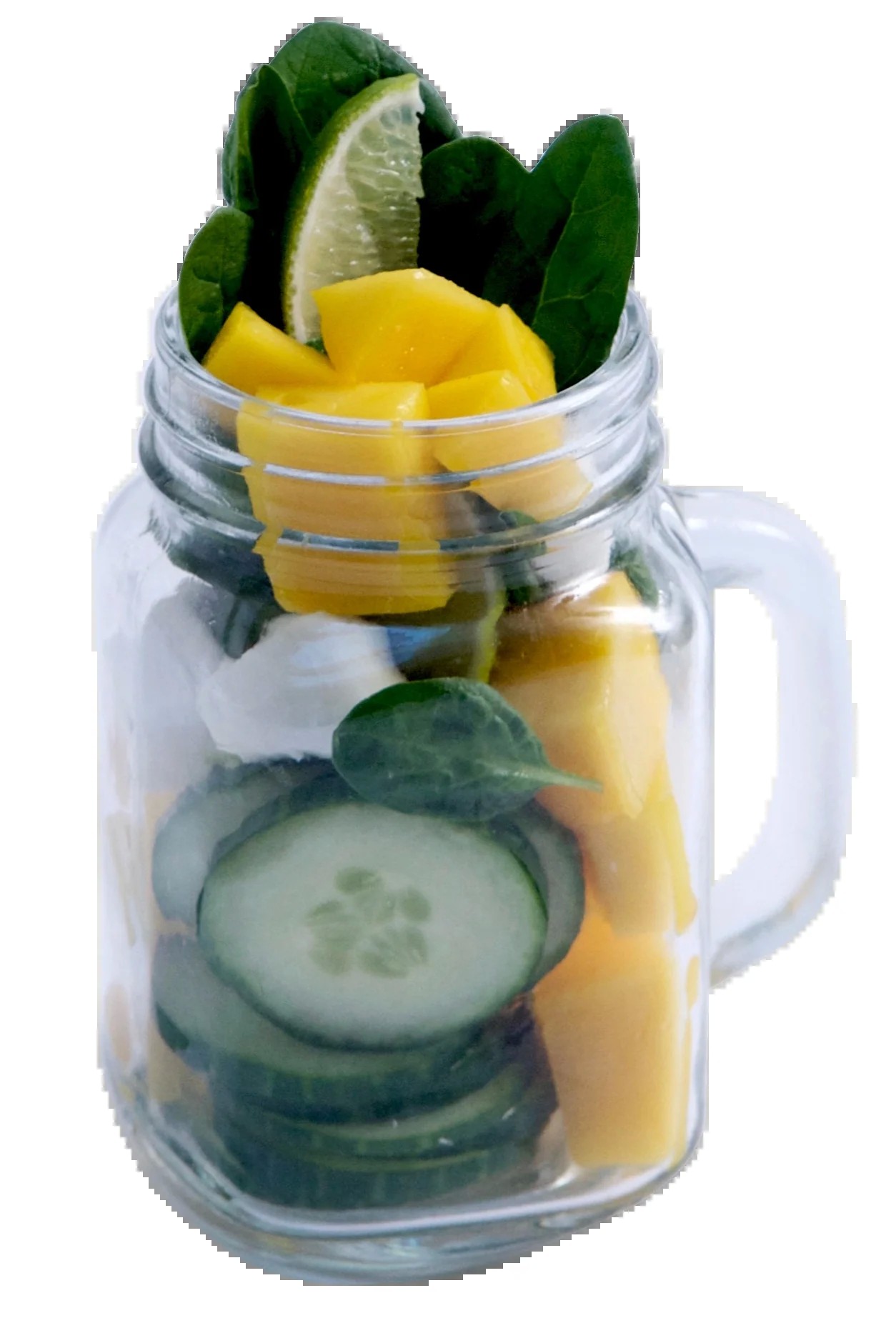 This super-hydrating citrusy blend gives you energy and antioxidants, making it a perfect pre-workout drink. With the sweetness, fiber, and vitamins of mangoes, the hydrating anti-inflammatory properties of cucumbers, the bone-strengthening pro-digestive benefits of spinach, and the tropical combo of stress-reducing lime and fat-burning organic coconut, this is just what you need if ever your get-up-and-go kind of got up and went. Our smoothies are all made so they'll taste great mixed with just water, but you can use 1 cup of any liquid you like.