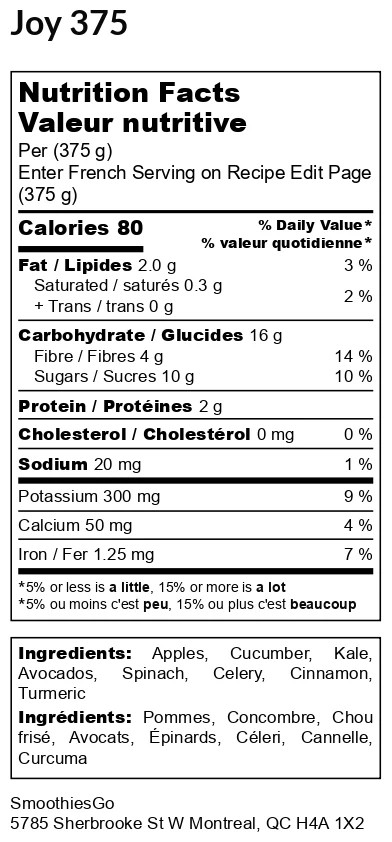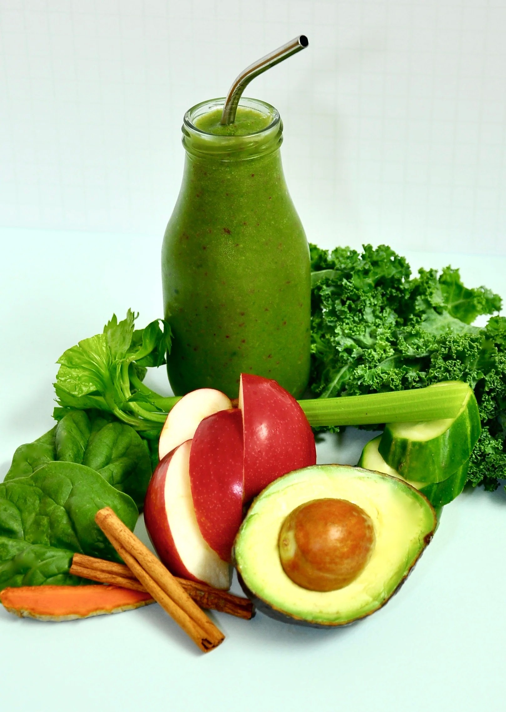 Ingredients: Apples, Cucumber, Kale, Spinach, Avocado, Celery, Lemon, Organic Cinnamon, Turmeric.