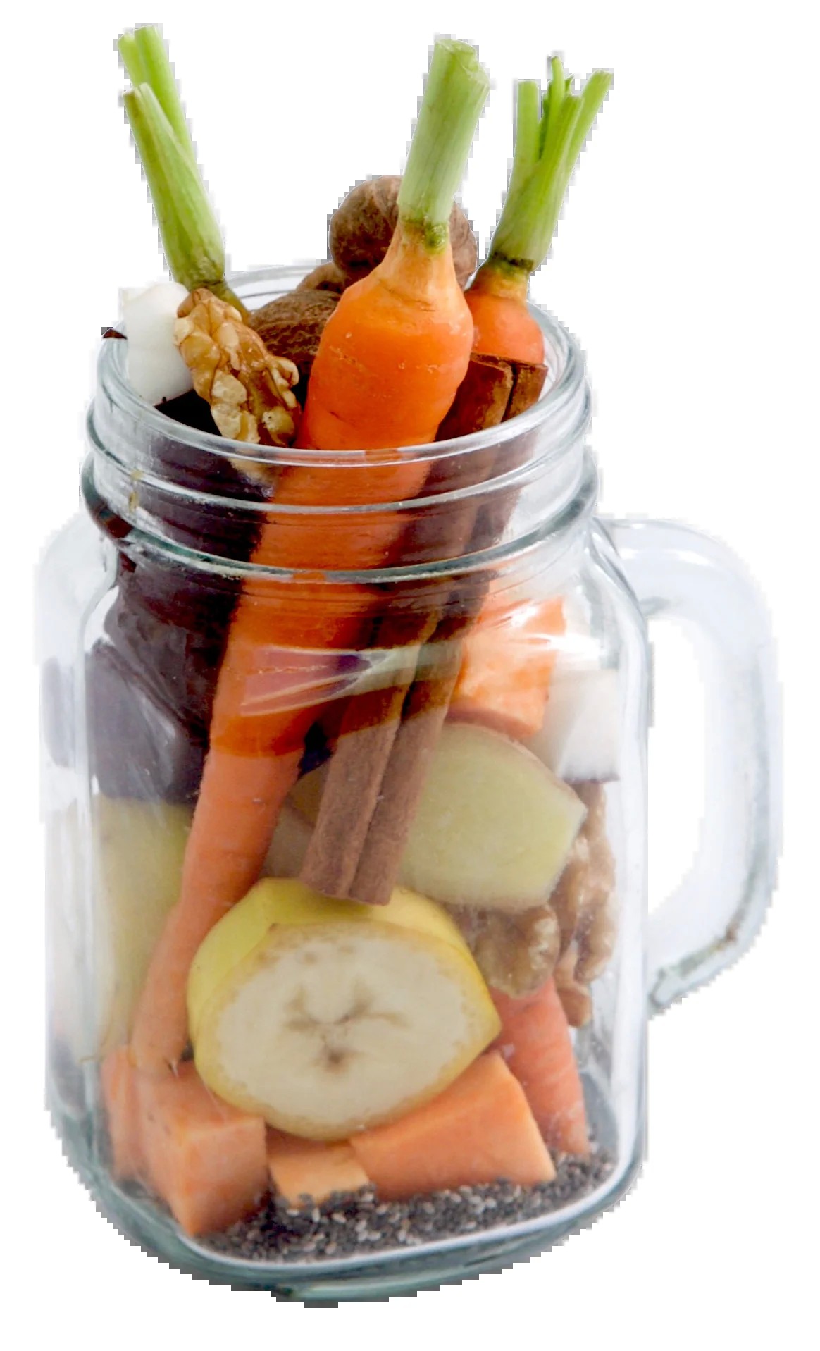 Ingredients: Bananas, Carrots, Sweet Potatoes, Dates, Walnuts,