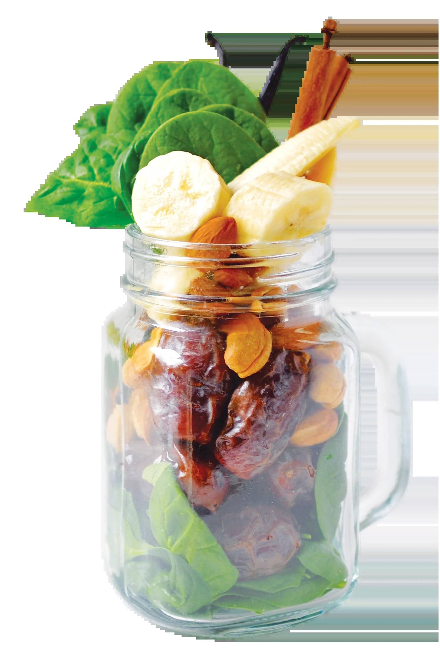 Ingredients: Bananas, Homemade Cashew Milk (Water, Cashews, Organic Vanilla Extract), Spinach, Almonds, Dates, Organic Ginger, Organic Cinnamon, Nutmeg, Cloves, Himalayan Salt.